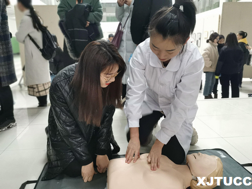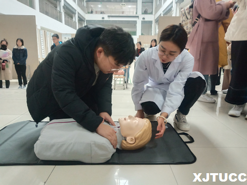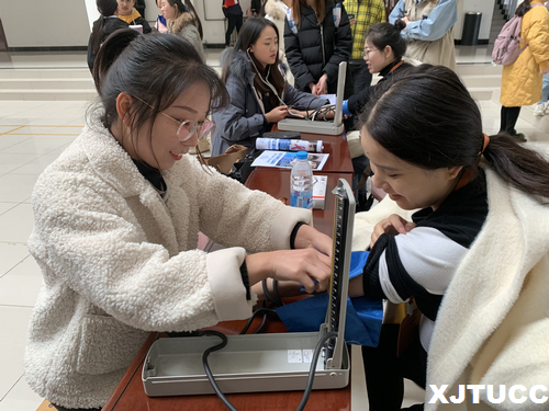 此次活动分别在教学D楼大厅(11月27日)和经管楼东侧大厅(11月28日)两个地点展开,共分为三个环节。第一环节由护理系学生志愿者进行心肺复苏急救模拟展示,为同学们讲述心肺复苏的具体操作流程,并邀请各系同学亲身体验。此项技术能够做到尽快挽救心脏骤停患者,为抢救生命争取更多时间。从环境评估到胸外按压,从手法要求到时间控制,生命不容等待,救援刻不容缓!第二环节由护理系学生党员进行义务测血压志愿活动,宣传血压相关知识的同时为我院师生普及血压的正确测量方法。随着人们生活节奏的加快,压力的增大,高血压人数与日俱增,所以监测血压更显得尤为重要。第三环节由护理系学生向同学们发放“预防艾滋病,你我共参与”的宣传单页,为其讲解艾滋病的传播途径和好发人群,充分掌握并增强自我保护意识,知艾防艾。