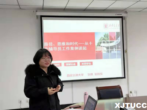 张楠副教授围绕辅导员的工作路径、工作思维和时代议题三个方面,结合了十个案例对辅导员工作进行了讲解。从辅导员经常遇到的问题出发,谈到辅导员工作的边界化;她建议要以可视化、可数据化和可量化的方式建立观测点去了解学生、认识学生。同时,大量心理学知识与工作实践的结合,启发我们去思考学生问题背后的社会支持系统、价值体系、社会环境等因素。