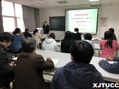 阎治安教授从毕业设计(论文)的定义、毕业设计(论文)的实际意义,毕业设计(论文)的几个环节,如何指导好毕业设计(论文),毕业设计(论文)常出现的问题等五个方面进行了具体详细的讲解,特别是就往年毕设中常见问题如题目过大、工作量较小、图表不规范、参考文献数量不够等问题进行了一一讲解。阎老师结合自身多年指导毕设经验,讲解论文规范性的同时,强调指导教师一定要认真、严谨指导学生,本着负责任的态度做好本职工作,指导学生进行论文写作时,能够引导学生开拓眼界,使其在设计创作上有所突破,高质量完成毕业(设计)论文。