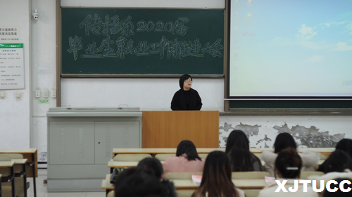 传播系于11月22日下午在教学楼A100开展2020届毕业生就业工作推进大会。出席本次会议的有传播系主任刘强、主任助理吴越、辅导员杨月。大四全体学生参加本次会议。