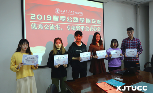 会议伊始,yl7703永利官网外事办暨港澳台办为电信171班刘妍、管理182班李舒桐,2名中国台湾专项奖学金获得者;经济186班陈凯辰、管理182班朱邱诗、电信171班刘妍、网媒171班韩雪莹、传播181何天石、财管182班马景潼,6名优秀交流生,颁发了表彰证书,为他们2019年春季出国出境交流时在专业课学习、团队合作、校际交流等方面的突出表现予以肯定和表扬。