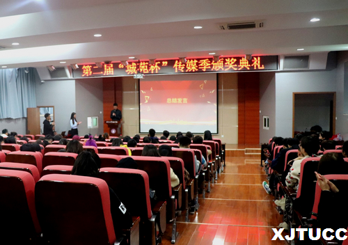 第二届传媒季大赛下设三项主体赛事,分别是:第四届“看见时光”摄影大赛,第二届主题征文大赛以及第十二届“新声力”主持人大赛。首先,大家共同回顾了本届传媒季各项赛事的精彩瞬间和优秀作品展播。随后,几位老师依次为获奖同学颁奖。之后,获奖代表上台发表获奖感言,向我们讲述他们参赛背后的故事。胡发彩同学代表征文比赛获奖选手上台发言,激情的讲述她与文字的故事,胡钰杨同学则怀着激动的心情向在场的各位表达了对主持人大赛的感激之情,通过这次比赛圆了她当一名主持人的梦想。最后,团委书记吴昊翔对本次“城苑杯”做总结讲话,他指出,传媒季系列活动是我院校园文化建设的重要内容,是第一课堂的有效拓展,通过参与活动,同学们进一步提升了运用不同媒介沟通表达的能力,符合新时代对青年学生提出的新要求。同时他对积极组织、参与活动的指导老师和同学们表达了感谢,并祝愿传媒季系列活动越办越好。