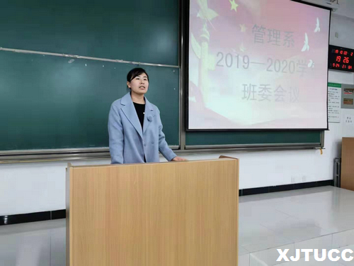 会议伊始,由管理系团工委副书记贾一哲宣读了团日活动文件和团支部日常考核制度。他指出团日活动是为了促进班级之间的凝聚力,使班级气氛更加活跃的必要活动。日常考核制度则应被每位同学牢记于心,并用来规范自己的学习生活。接着,2018级班长兼部长代表赵东风同学也对有关班级工作进行了发言。他表示要重视班内建设,积极提高成员素质和重视班级实践,发挥班级协作精神,同时作为一名团学干部,更要以身作则,踏实本分。随后,2018级优秀班长代表董文俊分享了自己工作一年的心得体会。他多次强调班委要积极去解决同学在校内学习和生活上的问题,多与同学进行交流去发现自己的不足来加以改正,争取做到老师放心、同学安心。最后,刘健对班委们的工作进行了指导。他在班委之间如何共同协作,提高班级整体学习氛围等方面给大家传授了一些方法。并提醒大家要了解每位同学,多与同学多交流,调动班级学生学习与活动的积极性,提高自己的管理能力,增强班级凝聚力。