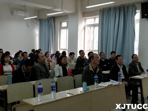 计算机系主任缪相林教授以“因材施教、分类教学”为主题,通过对计算机系2016级、2017级、2018级学生四级通过率与高考成绩的对比分析,讲述了计算机系在学生英语学习过程中教学管理理念、实施措施等,指出充分认识教学对象是做好英语教学的基础。在改进英语教学方法方面,缪老师针对不同类型的学生提出了如何施教的具体的意见和建议。