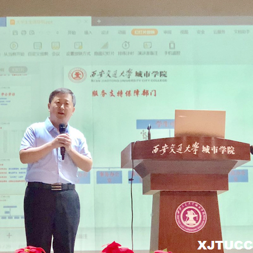 辛红伟以“大学生活导引”为主题,以大学生生活现状与社会的现实要求为对比,引发学生思考“大学该怎么读?”他结合全国教育大会精神,指出大学生要学会做人、学会求知、学会健体、学会审美、学会劳动,要做到德智体美劳“五育并举”,坚持全面发展;要以素质拓展、创新创业等体系为指导,不断提升自己的综合素质。
