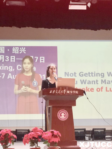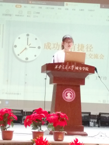 席佳欢同学分享了自己的学习经验,鼓励大家勇于摘掉自己身上的标签,用不懈努力的精神使自己更加完美;李一卉同学通过自己的创业实践经历,让同学们明白创新意识、创新思维及创新精神对自己成长的积极作用;李嘉宝同学幽默、活泼的言语向大家分享了自己追求兴趣、追求学业、追求本心的故事。王子珍同学以自身的励志故事,激励同学们树立目标,持之以恒。听众感情饱满,时而掌声四起。希望榜样的力量能够深深地感染他们,指引他们奋勇向前。