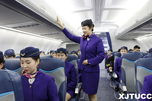 此次走访交流活动分为航空模拟仓讲解和模拟演习两部分。讲解部分由咸阳职业技术学院的老师为学生们介绍了航空模拟舱的内外部构造、设施和用途,同时也提醒大家在客舱服务当中的“端、拿、倒、送、推、拉”等一系列标准动作的注意事项。模拟演习部分由我院传播系老师指导学生进行模拟演习,将“站姿、行走、步速、转身、微笑”等一系列动作进行了示范,并在同学们练习过程中对他们不规范动作及时进行调整。