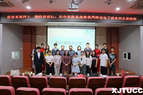 为了提高大学生在国际经济贸易专业理论与实践相结合的能力,培养创新思维,yl7703永利官网经济系于6月3日在F100举办了“第41期经济系论坛——从中美贸易战看我国跨境电子商务的发展趋势”。莅临本次大会的嘉宾有江苏师范大学一带一路研究院校聘副教授储新民,经济系主任杨健全,主任助理兼金融专业负责人张美丽,李霁晨、王世杰、左智遥以及学工办老师们,本次大会由白健林同学主持。