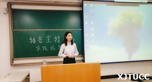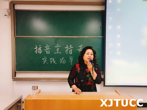 大会伊始,陈洁讲解了关于播音主持的内容、播音员的素养,并且请同学上台进行朗诵展示。同学们积极上台展示了个人风采,带来了《青衣》《蒙古长调》等精彩的朗诵。在朗诵和展示的过程中,陈洁发现了同学们普遍存在的问题,比如嘴角开度不够、没有注意提颧肌、声音没有打出来、四声的调值应当发到位等。她言传身教,带领大家一齐练习绕口令发音,告诉大家晨功练习绕口令的正确方法。她强调,台上一分钟,台下十年功,播音主持专业的学生专业一定要过硬,要求大家多看书,多练习,多积累,要抓住每一个锻炼的机会,并提醒大家在工作岗位上应有强烈的责任心。现场,陈洁耐心地为大家答疑解惑,纠正错误,对在座学生播音专业水平的提升有很大的帮助。