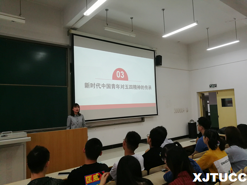 团会中,王老师首先从“把个人命运同国家前途命运紧密相连、树立与时代主题同心同向的理想信念、增强“四个意识”、坚定“四个自信”、做到“两个维护”、唯实唯干培养坚毅品质”等四个方面讲解新时代中国青年对五四精神的传承。其次通过实际案例分析以及观看视频的方式让团员青年学习五四精神的科学内涵,虽然时代在变化,但五四运动倡导的爱国、进步、民主、科学的精神内核始终没有改变,依然指导一代又一代年轻人。