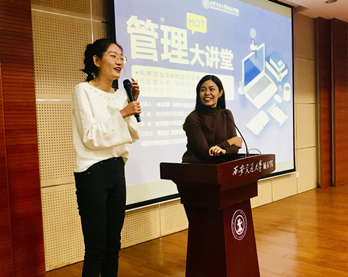 26日中午12:30,林诗恩助理做客管理大讲堂为城市学院管理系18级大一新生开展了主题为“商学在生活中的实际应用”的讲座。讲座开始,林老师提出问题:“如果有机会看见五年前的自己,你会对当年的自己说什么?”激发大家积极思考并互动问答。接着,林老师用一个生动故事中的老中轻三个人物储蓄的习惯,引出了“复利”的概念,让同学们感受西方老师从实际生活的中的问题着手讲述商学理论的教学方式。然后,林老师从自身经历讲到,目前全球就业的趋势引出国际人才不仅要懂外语,还要懂多元文化,有过跨地域,跨文化国际教育经历,可以从不同视角理解世界的年轻人未来会有很好的发展。