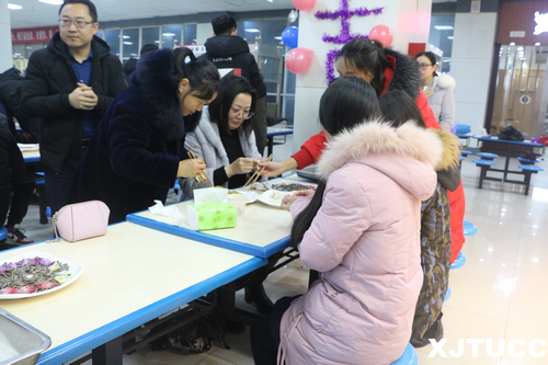 为进一步团结吉利班成员,宣传吉利文化,西交大城市学院机械工程系吉利班于12月27日在中快餐厅一楼举行了“大吉大利,今晚吃饺子”包饺子大赛。 教学服务中心主任陈晓南,机械工程系主任刘吉轩,吉利企业工程师孙登峰,机械工程系首席教授、17级吉利班班主任张克猛,机械工程系办公室主任李华,主任助理樊琛老师、史艳丽,学生主管霍伟森,16级班主任门静,吉利班陈源,机械工程系王苗、刘庚林老师,16、17级辅导员李乐、张俊华老师等特邀参赛,吉利班全体成员参加比赛。本次比赛由段慧菲、杨朕同学主持。