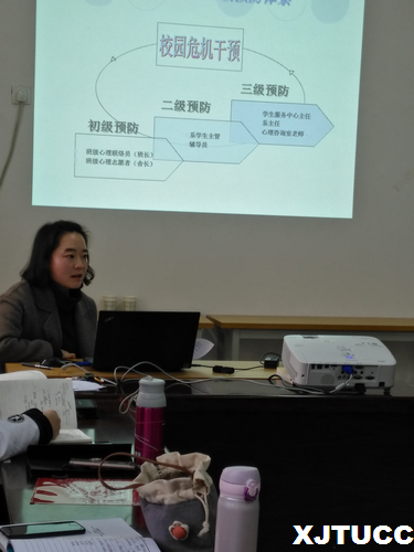 最后,张德馨老师分享了自己参加第60期辅导员骨干班的学习心得和学习收获。她从危机关注的对象、时间及谈话技巧上重点讲解到校园危机的应对,建议大家树立“报告意识”,努力遵循“倾向必报,计划必管、行为必医”的原则,开展日常工作。
