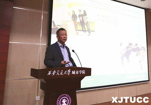 王政主任讲到西安交大城市学院目前是亚岗昆学院最重要的合作伙伴之一,赴加留学的学生整体素质都非常优秀,目前项目学生基本都留在加拿大工作或攻读硕士。他介绍到2018年参加暑期学分夏令营的学生也通过短暂的北美留学生活和纯英文的商务沟通课程,从商务英语写作能力、团队合作演讲能力、案例分析整合信息能力、个人生活独立能力等各个方面有很大的提高。他也希望更多学生和老师有机会到加拿大、到亚岗昆学院这所加拿大首都最大的公立学院学习交流,促进两校和中加友谊常青。
