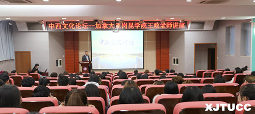 “加拿大教育主要以挖掘学生的特长为主,最终通过教育的过程让每个人成为在某一领域的顶尖人才”。王老师做客外语系中西文化论坛从“中西教学模式的差异”引出西方教育重视人性化的教学理念。他强调,在上课方面,西方老师强调师生互动、教学参与过程;在作业方面,大多都以团队合作、查找资料、报告论文等形式完成为主;在考试方面,引出亚岗昆学科考评中学生小组合作作业、批判性思维写作、在线搜索文献阅读、课堂演讲等环节要占到最终成绩的70%。接着,他简要介绍了目前在亚岗昆学院参加两校3+1本研项目,读英语教师(Teachers of English as a Second/Foreign Language)专业的西安交大城院外语系郭瑾怡同学,在英语语言提升、专业实习、生活自理、文化体验等各方面收获颇丰的真实留学情况,并鼓励更多外语系学生有机会走出去看看,相信在大学四年一定会有全新收获,对未来的学业和职业规划也一定会有更全面的打算和定位。