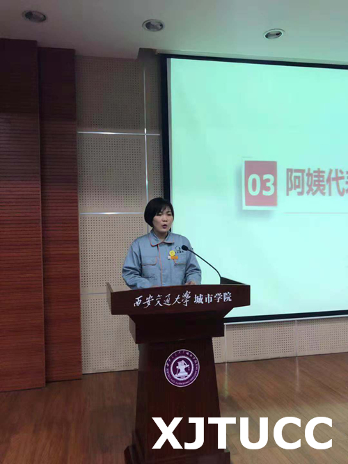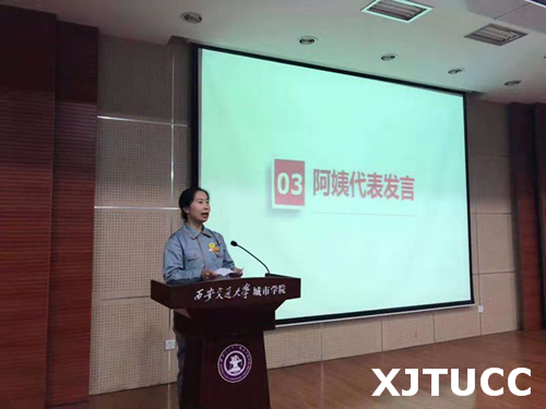 院学生联合会生活部部长张倩同学作为学生代表上台发言,对各位辛勤付出的阿姨表示感谢,并代表所有在校学生做出承诺,在以后的生活中,大家会积极配合阿姨们的各项工作,维护宿舍环境、遵守公寓纪律。王玉峰老师在发言中对此次活动给出高度评价并鼓励所有阿姨再接再厉,同时他对学院后勤工作及经发物业也提出了更高的要求,希望公寓工作人员能够继续提高自身的业务能力,树立正确的工作态度。相信在学院后勤、院学生会以及经发物业的精诚合作下,学院后勤工作定会更进一步。