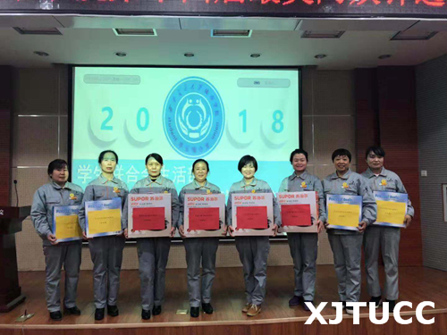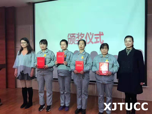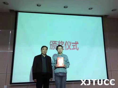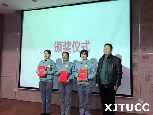最后,学生服务中心主任张学堂、学生服务中心王玉峰、学生联合会指导老师韩树和经发物业范红平经理分别为最美楼长兰小娟,最美值班员刘瑜、韩旭,最美安全员金妮颁奖。