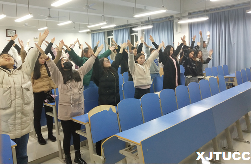 11月15日,健康学社迎来了第一次实践活动,社团指导老师叶超带领所有社团成员一起学做颈椎保健操。简单易学的颈椎操让大家瞬间释放压力,现场气氛轻松活跃。叶老师还为大家讲解了“轻疗愈”的情绪释放疗法,通过轻敲穴位,在疏通经络的同时进行积极心理暗示,帮助同学们有效消除压力与负面情绪。