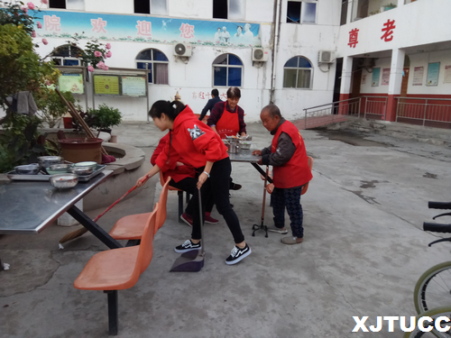重阳节当天上午,在负责人王琰、折伟强带领下前往位于未央区花园路的草滩敬老院。院长接洽志愿者后,大家按分组情况走进老人们的房间,和老人们面对面交流,听他们讲述年轻时的故事和目前的生活状况。志愿者们一边陪老人们聊天,一边拿起扫把等工具,帮助老人打扫房间,擦拭玻璃和地板等,为他们营造温馨舒适的环境。