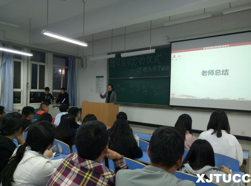 活动在肃穆的团歌中拉开了序幕。首先,团工委书记黄菲菲老师致辞,明确此次团日活动的主题,强调应当以积极、热情的态度开展团日活动,并在以往的经验上加强创新。接着,组织部部长张森渊讲解此次团日活动的内容与细节,并对团学组织提出三大要求:一、高度重视,突出特色;二、充分发动,活跃支部;三、文明宣传,深化成效。之后,2017级优秀团支书张倩和员宝宝同学分享了团日活动经验,使学生们加深了对此次团日活动的理解。
