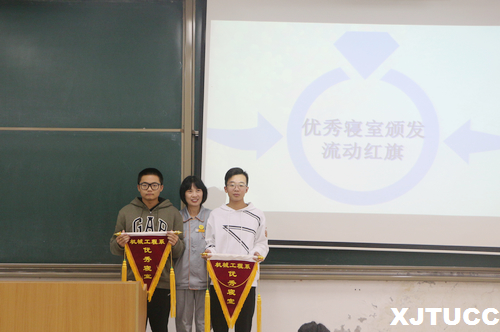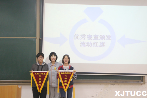 会议伊始,机械工程系团学会生活部部长唐明波宣读了关于寝室规定的有关内容,详细的介绍了寝室评分规则以及寝室违禁物品的请相关规定,强调了社长职责并提出了宿舍检查标准,提出了宿舍存在的问题,随后由四号楼的阿姨为优秀寝室颁发流动红旗。接着,生活部副部长李佳玲宣布开展第八届寝室文化节启动仪式,本次文化节的主题是“室内‘家’年华,室外‘秀’青春”。文化节的内容包括寝室文化设计,寝室才艺展示,趣味运动会等方面。最后,学生工作主管霍伟森老师对获奖宿舍表示祝贺并发表总结讲话,他强调宿舍是同学们生活的地方,一定要注意宿舍生活安全,并鼓励大家向优秀宿舍看齐,希望寝室长能以身作则,鼓励大家踊跃参加文化节,将本次寝室文化节做出特色。