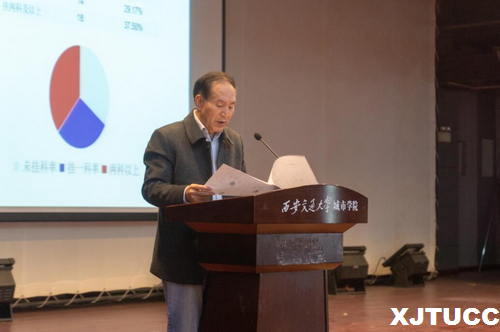 学生工作主管刘敏涛老师分别从学业成绩及格率、英语四级通过率、日常教育管理等方面向大家报告了上学年我系各班级取得的成绩和不足,并结合各项数据和部分学生案列进一步分析了存在的学风问题。随后刘敏涛老师对学风建设、班风建设及舍风建设等工作做了安排部署,希望每位学生对自己的学习情况进行总结和反思,主动配合系里工作安排,提升自己的学业水平。