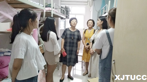 8月25日晚,传播系主任张蓉,北京中航联盟教育投资有限公司驻校主任王玢,传播系主任助理吴越,传播系办公室主任孙晓斌,传播系教师李灿、孙涵忆,传播系学生工作主管陈杜昊,辅导员田园园及学生会主要学生干部对2018级新生宿舍进行走访。