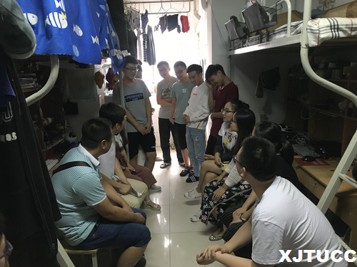 7月3日下午,电气与信息工程系主任助理张永超,电信系老师申淼、徐微,学生主管王姣、团工委书记李璐及辅导员丁玎、张敏娜老师带领电信系团学会及公寓创优工作部对学生宿舍进行了走访和谈话。