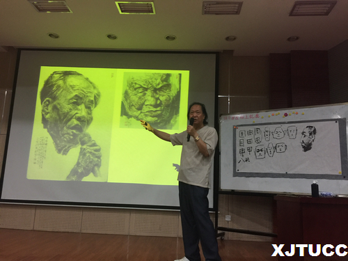 6月7日晚,著名人物画家、陕西省美术家协会会员邵梦龙先生在我院教学楼F100召开“国画肖像画法”专题学术讲座。艺术系主任解安宁教授及艺术系全体师生参加了此次讲座,本次讲座由艺术系副主任张春新老师主持。