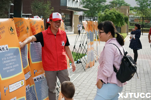 5月23日下午,“万里路”志愿者服务队又来到了草滩九路创新花园社区为居民们举办了一次关于心理健康知识的科普活动。同学们积极动手搭建外展海报,装扮成卡通人物来吸引人们前来咨询。志愿者们刚刚搭建好海报,就吸引了不少人前来观看。志愿者们热情、耐心地为前来观看的小区居民讲解关于心理效应的知识,普及如何排解心理压力的心理学方法。