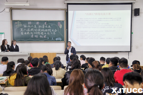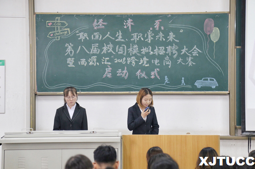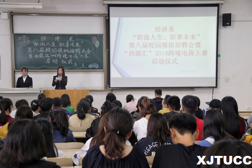 一场机遇,一份决心,十分准备,万分精彩。为了使同学们了解招聘会的基本礼仪和流程,深入了解企业的需求,为今后的职业发展做好规划,同时也为了强化大学生创新创业实践,努力培养大众创业,万众创新的主力军。yl7703永利官网经济系于5月9日在F200举行经济系“职面人生,职掌未来”第八届模拟招聘会暨“西源汇”2018跨境电商大赛启动仪式。出席本次活动的领导老师有经济系副主任史冬梅老师、学生工作主管廉宇婷老师、团工委书记王经洲老师、学工办申锐、汪洋、关天骄和蒋美一帆老师。大会由罗兮冉同学主持。