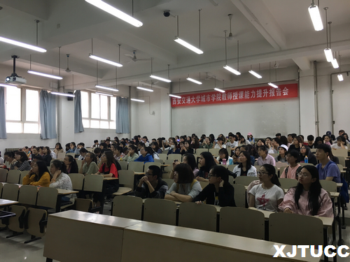日语教研室主任吴夫迎详细解读了“三证”的内容,深入简出地向大家展示了所有我院认可的关于日语专业的能力证书,并一一解释考试费用、能力划分、重要性等内容,充分有效的直击主题。英语类教研室主任徐素云对学生刚进行完的月考进行分析,对学生阶段性学习成果进行总结,提醒学生日常学习的重要性。并且。徐素云对两个专业学生须取得的证书分别作一介绍,使学生更清楚的了解取得学位证、毕业证所需的条件。外语系还邀请到北京外交人员服务局国教中心卫晓璠向学生讲解专业技能证书之一TESOL国际英语教师资格证书的详细情况,包括证书的获取方法、考试费用、考试时间、认可度等。