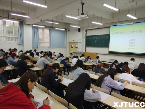 为了广泛宣传心理健康教育,增进我院学生对心理健康知识的了解,提高学生心理健康水平,根据我院第十届心理健康活动季的工作安排,经济系、护理系、外语系联合开展了第二届心理健康知识大赛初赛。初赛采取笔试形式,共有170余人参赛,初赛于 4月11日中午12点在B100、B200教室举行,由经济系、护理系、外语系学工办辅导员老师担任监考。