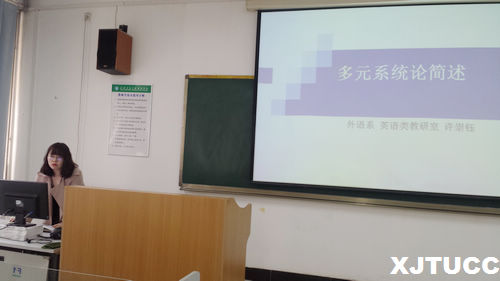 外语系英语类教研室副主任许崇钰老师概述了自己阅读的文献《20世纪西方翻译理论》。该文献从理论的起源、主要内容、对翻译理论发展的贡献及局限性、在中国的译介、批判与应用、与中国翻译理论的比较分析等方面讲述了特拉维夫学派学者埃文-佐哈尔(Itama Even-Zohar)创立的多元系统论。该翻译理论对西方以及中国的翻译理论及翻译研究与发展方面产生了重大的、具有历史意义的影响。