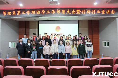 3月14日,管理系在F100召开团学干部部署大会暨创新创业促进会。管理系团学工作负责人吴江菊老师强调,创新创业竞赛是国家所望,社会所需的活动。此次创新创业竞赛需要做前期的大量准备工作,又需要中期的不断实践探索,再到后来的稳步发展,这三大步每步都需要耗费大量的时间和精力及不可或缺的团队合作精神,对大学生的能力培养和创新意识是一次独特的锻炼。管理系学生主管刘健老师指出,团学干部要成为学风建设的践行者和组织者,成为创新创业学科竞赛的先行者和成为校园文化的争先创优者,并对团学组织寄予了厚望。