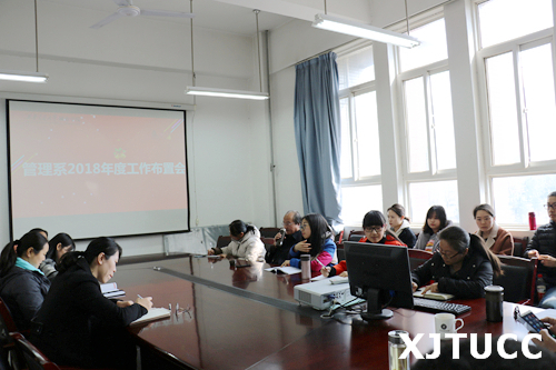 3月7日下午,管理系2017-2018学年第二学期工作部署会议在教二225室召开。管理系领导及全体教职员工参加了本次大会。会议由办公室主任许玮玮主持。