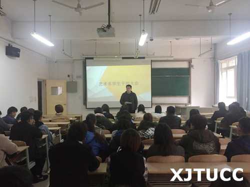 3月7日中午,艺术系在教学楼D109召开创新创业竞赛动员会暨第一次学生干部大会。艺术系学生工作主管李成,团工委书记马岚,辅导员王茜及全系各级班干部参加了此次会议。会议由王茜老师主持。
