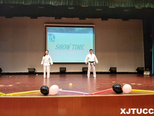 “Run With the Dream”,伴随梦想前行。随着中、日、英三语报幕,外语系第七届教学成果展示正式拉开帷幕。16级及17级的同学们以班为单位准备了许多令人眼前一亮的节目。编排独特的合唱动人心弦、浪漫感人的爱情故事打动人心、诙谐幽默的话剧引发一阵阵爆笑,同学们精湛的演技发挥的淋漓尽致,台上来自不同班级的选手们用他们的智慧与活力为观众带来一场五彩缤纷的视听盛宴。一个个精彩绝伦的节目将全场气氛推向一个又一个高潮,观众热烈的反响肯定了选手们辛勤的付出。随着日语外教平地克己和张佳琳同学的的空手道表演外语系第七届教学成果展示落下帷幕。