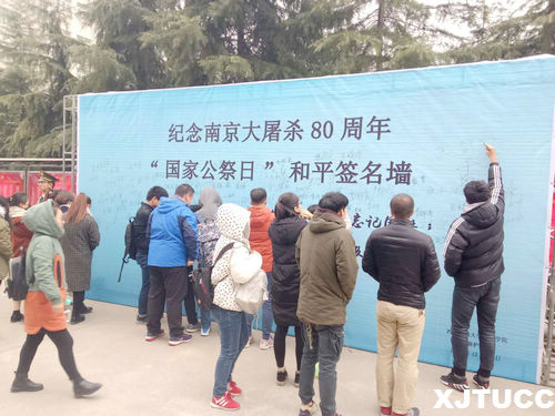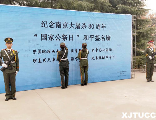 ,是南京大屠杀80周年死难者国家公祭日,也是我国第四个“国家公祭日”。我院国旗护卫队在大学生活动中心楼下开展“和平签名”活动。当日气温很低,国护队员不惧严寒,护卫着“和平签名墙”。