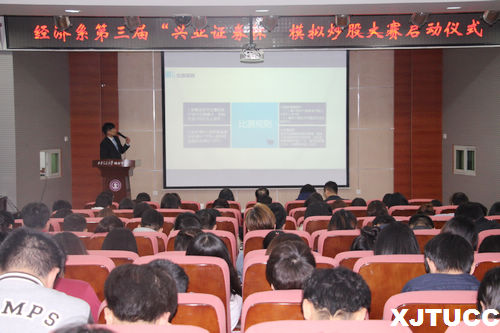 本次模拟炒股大赛面向我院全体在校学生,由兴业证券股份有限公司、经济系金融教研室、经济系学工办主办,由经济系团学组织社团工作部、证券投资社承办。大会伊始,由经济系副主任史冬梅老师致开场辞,她为大家强调了理论联系实际的重要性即学习金融理论知识和模拟炒股实操的紧密联系,使同学们产生了浓厚的兴趣。接着,由兴业证券南二环营业部总经理鲍玉岗先生进行发言,他指出证券投资在理财中的重要性,提出在金融迅猛发展的时代,在校大学生应掌握金融常识,树立正确的投资理念,未来才能更好的工作生活,并且他鼓励大家踊跃报名,积极参与此次大赛。随后,兴业证券投资顾问李源先生就本次比赛的具体内容,如参赛对象、时间、流程和规则,以及奖项设置进行详细介绍。最后由经济系主任杨健全老师作总结发言,他指出,希望同学们权衡好学业与课外活动,能够学思结合,以赛促学,学以致用,提升实战操作能力,并且呼吁更多的同学利用课外时间积极参与此次活动。