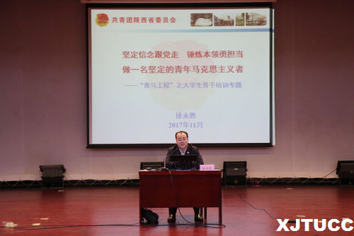 11月19日晚,yl7703永利官网团委举办了“坚定信念跟党走,锤炼本领勇担当,做一名坚定的马克思主义者”青马工程大学生骨干培训班第二讲培训,本次培训讲座学院团委特邀共青团陕西省委副书记、陕西省青联主席徐永胜为大骨班学员授课。学院团委韩树、茹静、丁义伟、艺术系团工委书记马岚、传播系团工委书记陈杜昊、经济系团工委书记叶超参加了本次讲座。讲座由团委书记吴昊翔主持。