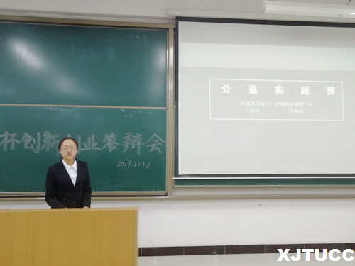 本次答辩共有六支参赛队伍。参赛选手们的作品多种多样,有以环保为宗旨的“可降解塑料制品”及“咸鱼翻身之旧衣改造”的创意;还有以关爱颈椎为出发点构思的“平视手机支架”;更有以关爱家暴儿童为出发点提出设立儿童基金的构思,希望能够帮助家暴儿童解决心理问题;“大爱无疆---走进恐怖症患者”这一公益活动的想法也让人耳目一新。参赛选手答辩后,各位评审向每个参赛选手提出建设性的问题,并且为参赛选手们指出其不足与可改进之处。