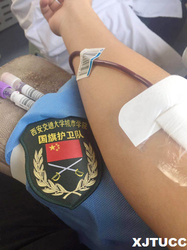 为贯彻落实党的十九大精神,践行社会主义核心价值观,我院国旗护卫队于11月8日中午自发组织在活动中心楼下无偿献血车处进行义务献血,本着自愿的原则,国旗护卫队共有十余名队员报名参加,在队长贺斌的带领下,有序进行填表、登记、量血压、验血、抽血。