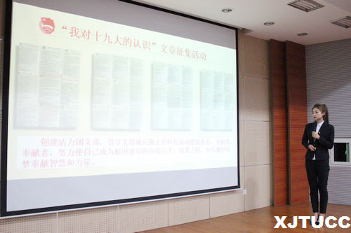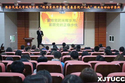 ,西安交大城市学院喜迎党的十九大暨201年度团日活动初审答辩在F100举行,本次大会旨在激发当代大学生的责任感和使命感,激发对中华传统文化的热爱,团结各团支部成员并加强各支部成员对党的十九大精神的学习、理解。莅临此次大会的领导和嘉宾有学院团委指导老师韩树,学院团委职能部门常务副部长郝延森、王煜超、孙皓雨同学,团委办公室杨锋同学以及来自全院各系的团工委副书记等。大会由团委组织部周瑱同学主持。