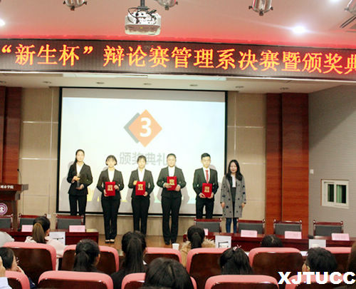 唇枪舌剑,思维盛宴。为培养管理系学生的逻辑思考能力、语言表达能力、组织能力,丰富学生的课外活动,西安交大城市学院管理系10月26日中午于F100举行第十三届“新生杯”辩论赛管理系决赛暨颁奖典礼。莅临本次比赛的嘉宾有管理系团工委书记韩珺、团学专项负责人吴江菊、学工办姚赞、赵杰以及校辩论队的评委们。