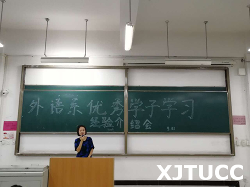 介绍会开始,党皓舟从自身过往学习经历中发生的趣事引入,为新生们生动的介绍了自己的学习经验。他强调了学习中“定目标”的重要性,提出“目标”和“努力”相结合,从而在学习中做到事半功倍。党皓舟通过自己在留学过程中发生的一件小事说明了“语言存在于生活中的每个细节”,还向同学们讲述了专业课老师的认真负责,希望新生可以和任课老师多沟通,多交流。随后,日语专业大四学生张舒尹图文并茂地讲解了许多日语方面的小知识,为新生介绍“举一反三”的学习方法,鼓励新生学会倾听、学会思考。同时,对于日语专业学生感兴趣的留学、考研等问题也一一做了解答。