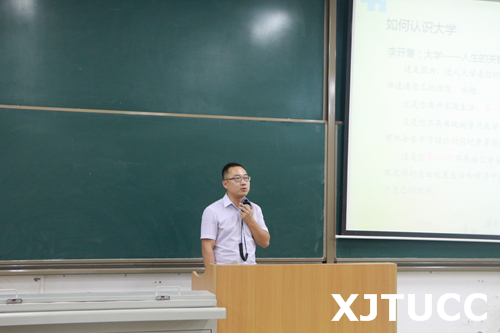 首先,霍伟森老师主要从“如何认识大学”及“入党启蒙教育”入手对新生进行引导,鼓励同学们在学好专业知识的同时要注重提高自身的综合素质,并告诫同学们作为一名优秀的大学生要学会谦虚、宽容、坚持,要勇于担责,更要学会感恩。随后,还为新生介绍了我院的资助管理体系,分别从贫困生认定、助学贷款、综合素质测评、国家奖助学金、学院奖学金以及勤工助学等六个方面展开,为同学们作了详细讲解。