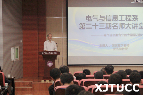 9月19日下午,西安交大城市学院电气与信息工程系特邀西安交通大学电气与信息工程学院副院长、国家级教学名师、博士生导师罗先觉教授为大一新生作了“电气信息类专业的大学学习和个人发展”专题讲座。讲座由崔杜武副院长主持,电信系全体教师及大一新生参会。