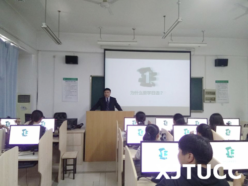日语专业教育由日语专业负责人李国栋副教授主讲。李老师从日语专业的发展方向出发,系统讲解了相关课程的特色以及学习方法。对于学生感兴趣的留学、赴日带薪实习、考研、就业等问题也详尽地做了宣讲。李老师还鼓励新生参加各类比赛,全面发展。