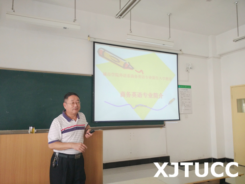 商务英语专业教育由商务英语专业负责人杜彦龙副译审主讲。讲座伊始,杜老师就提出了“什么是商务英语?”“为什么要选择商务英语?”这两个问题,随后他阐述了他对商务英语的理解,并从商务英语人才发展前景、商务英语培养方案、商务英语人才就业方向和管理与要求这四个方面做了全面的介绍。最后杜老师对新生提出了“六新”,即:新起点、新探索、新体验、新希望、新追求、新征程,希望新生能在大学四年里收获知识、收获成功。